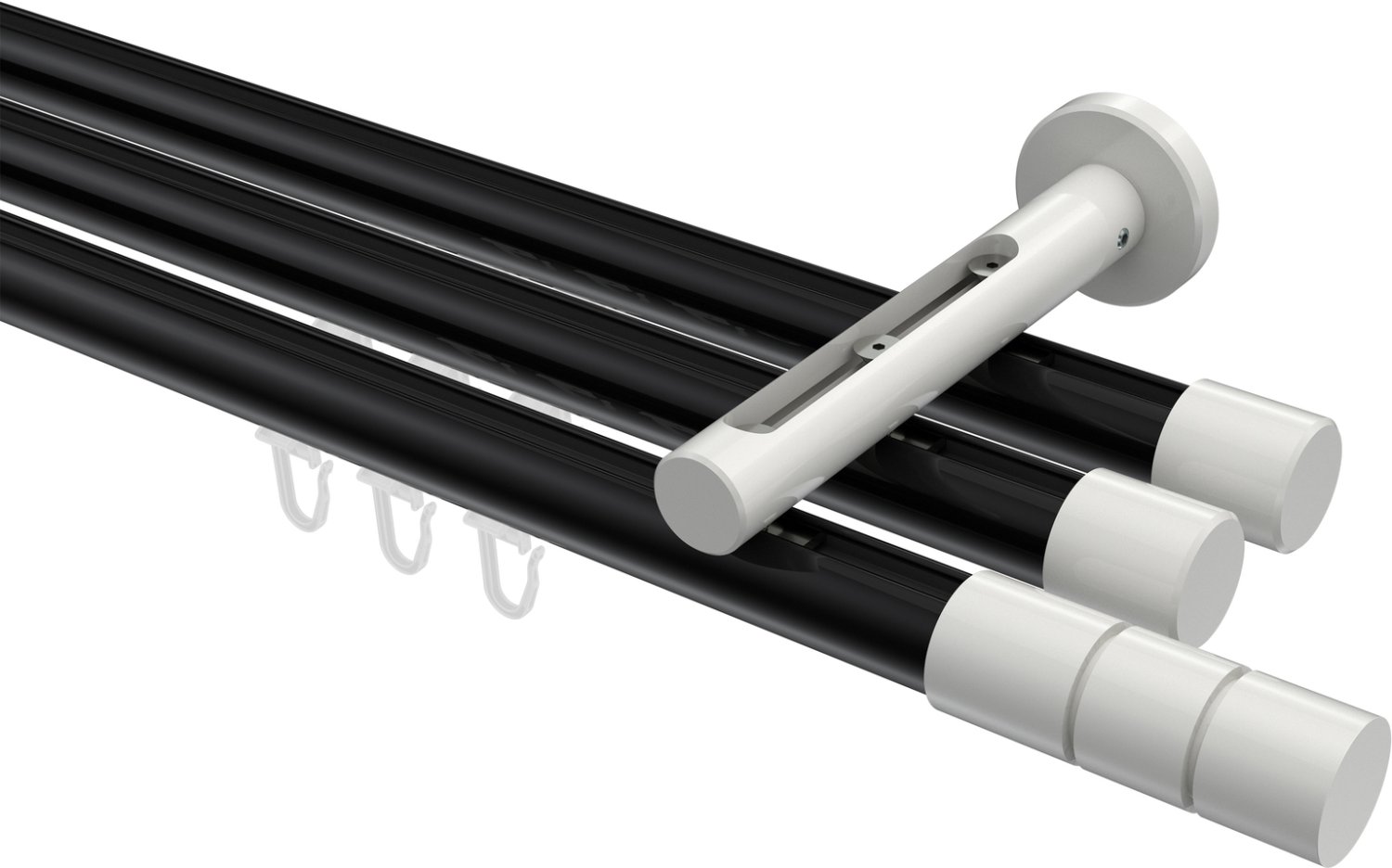 Gardinenstangen mit Innenlauf aus Aluminium / Metall in 20 mm Ø, 3-läufig, Modell SITENO - Elanto Schwarz / Weiß
