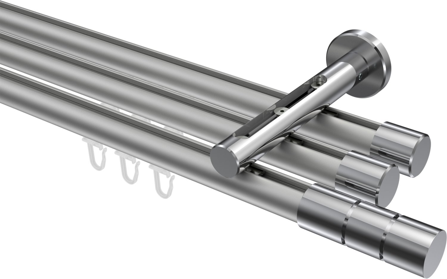 Gardinenstangen mit Innenlauf aus Aluminium / Metall in 20 mm Ø, 3-läufig, Modell SITENO - Elanto Silbergrau / Chrom