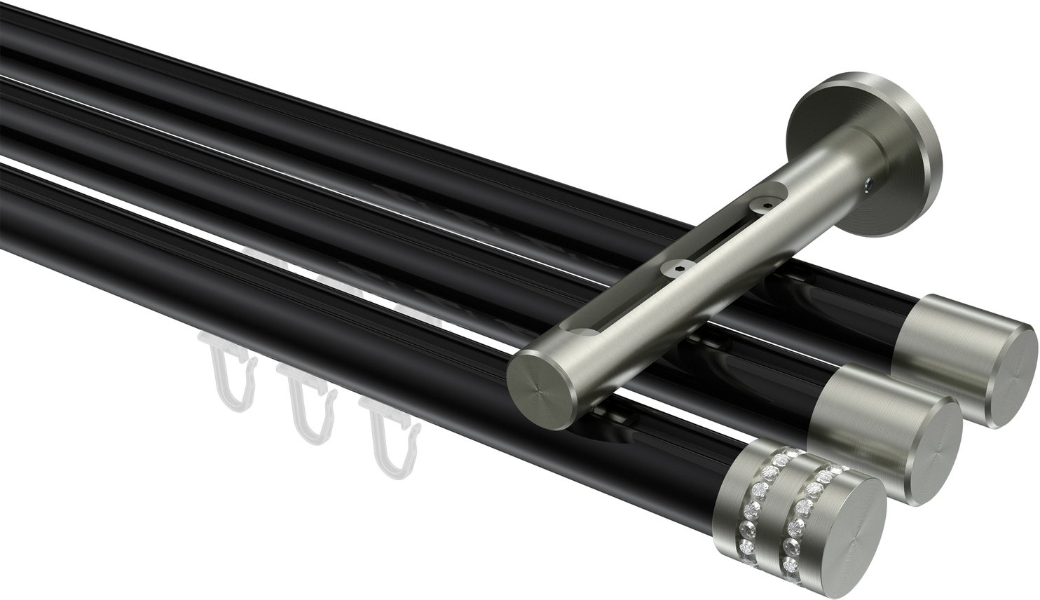 Informationen zu Innenlauf Gardinenstange Aluminium / Metall 20 mm Ø 3-läufig SITENO - Estana Schwarz / Edelstahl-Optik:
