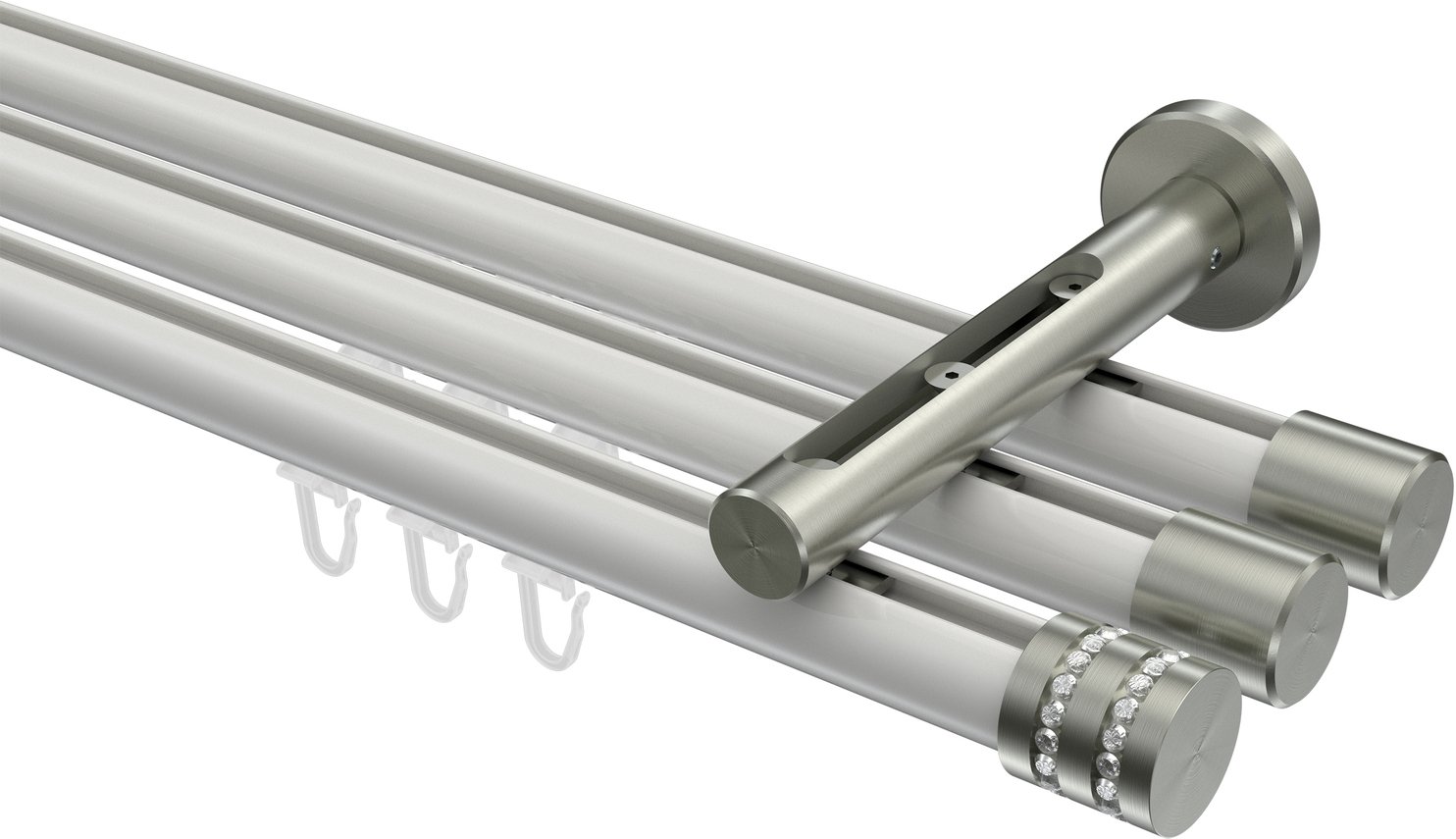 Gardinenstangen mit Innenlauf aus Aluminium / Metall in 20 mm Ø, 3-läufig, Modell SITENO - Estana Weiß / Edelstahl-Optik