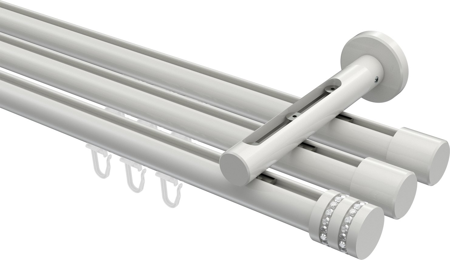 Gardinenstangen mit Innenlauf aus Aluminium / Metall in 20 mm Ø, 3-läufig, Modell SITENO - Estana Weiß