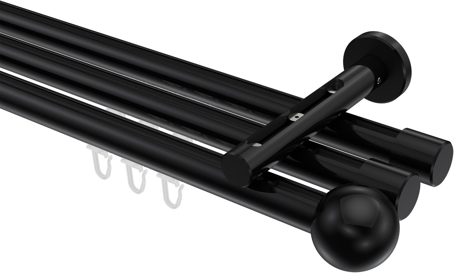 Gardinenstangen mit Innenlauf aus Aluminium / Metall in 20 mm Ø, 3-läufig, Modell SITENO - Luino Schwarz