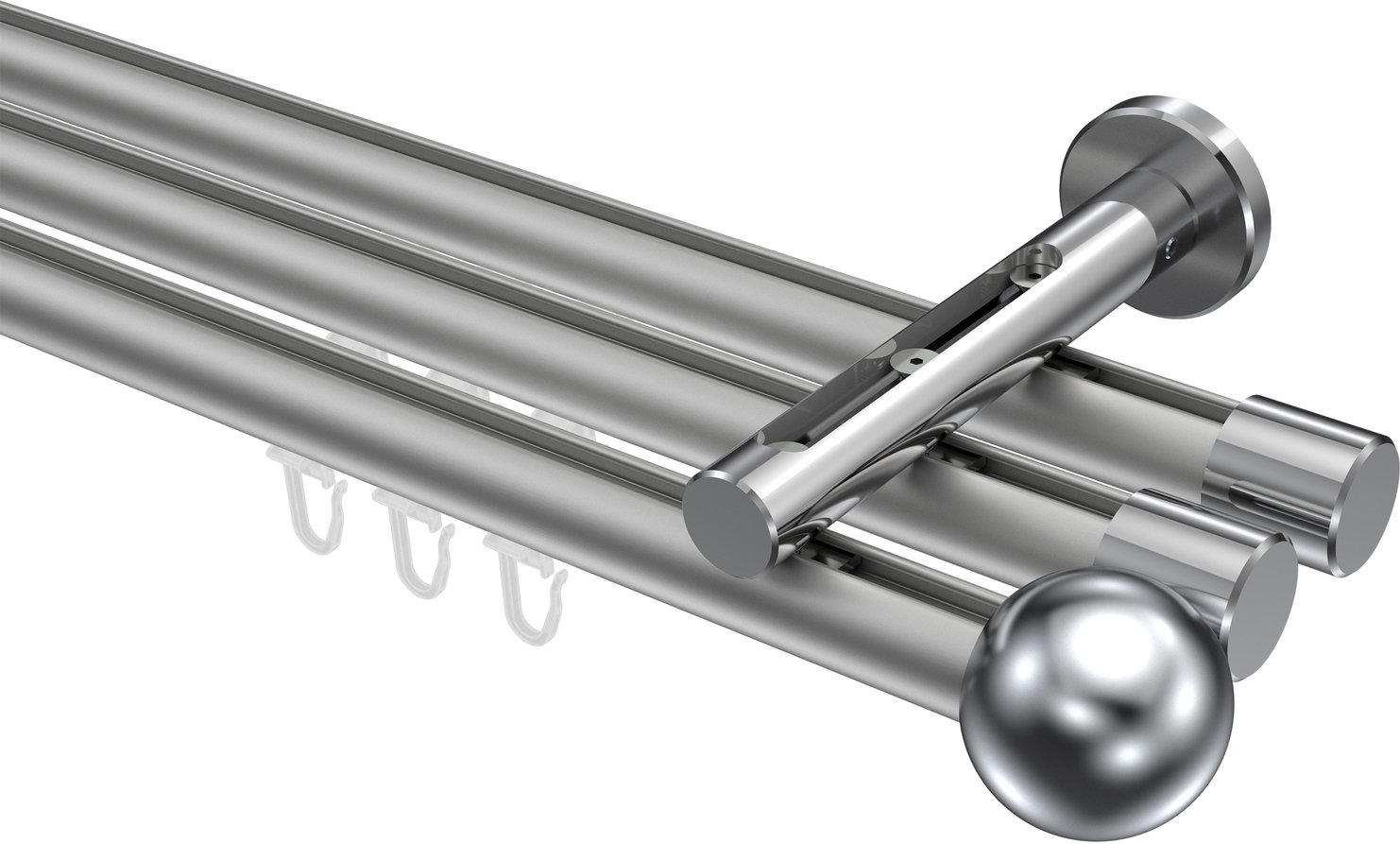 Gardinenstangen mit Innenlauf aus Aluminium / Metall in 20 mm Ø, 3-läufig, Modell SITENO - Luino Silbergrau / Chrom