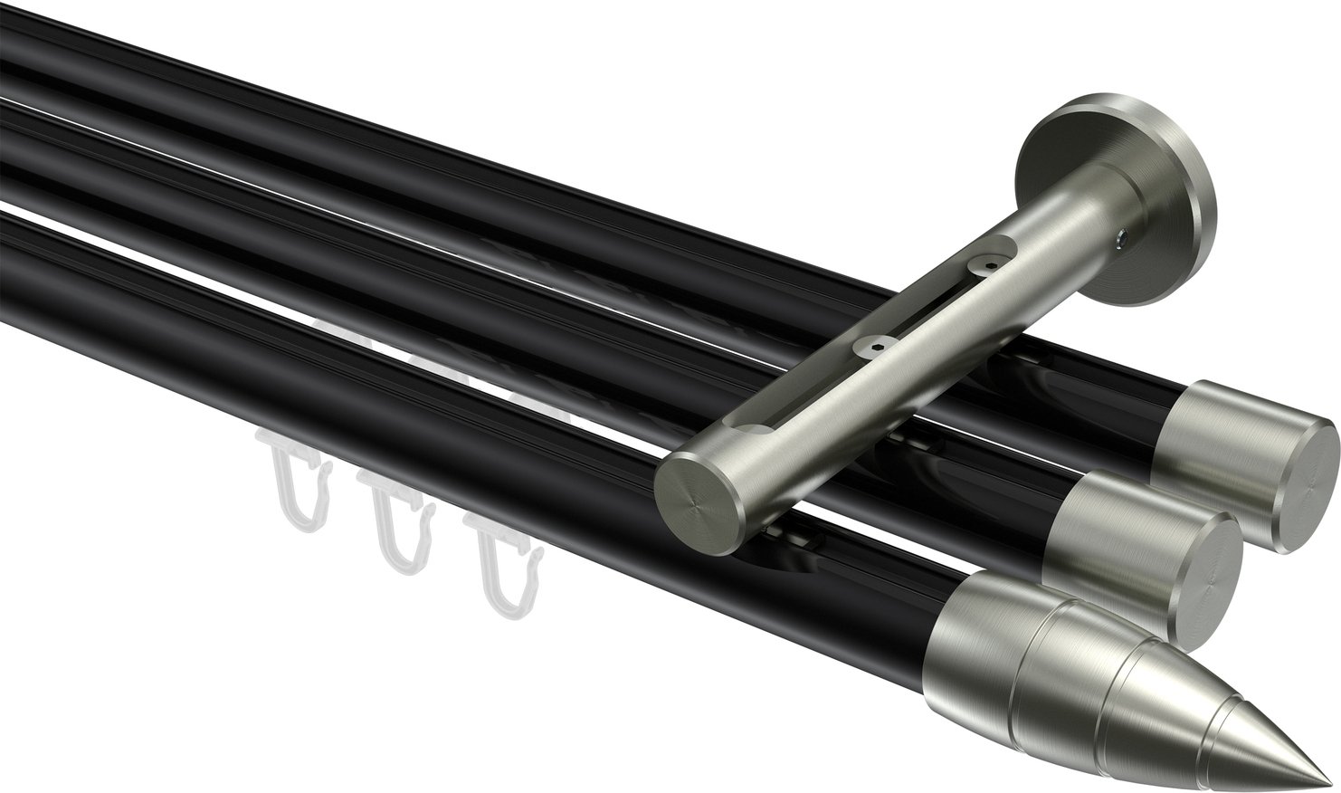 Informationen zu Innenlauf Gardinenstange Aluminium / Metall 20 mm Ø 3-läufig SITENO - Samanto Schwarz / Edelstahl-Optik: