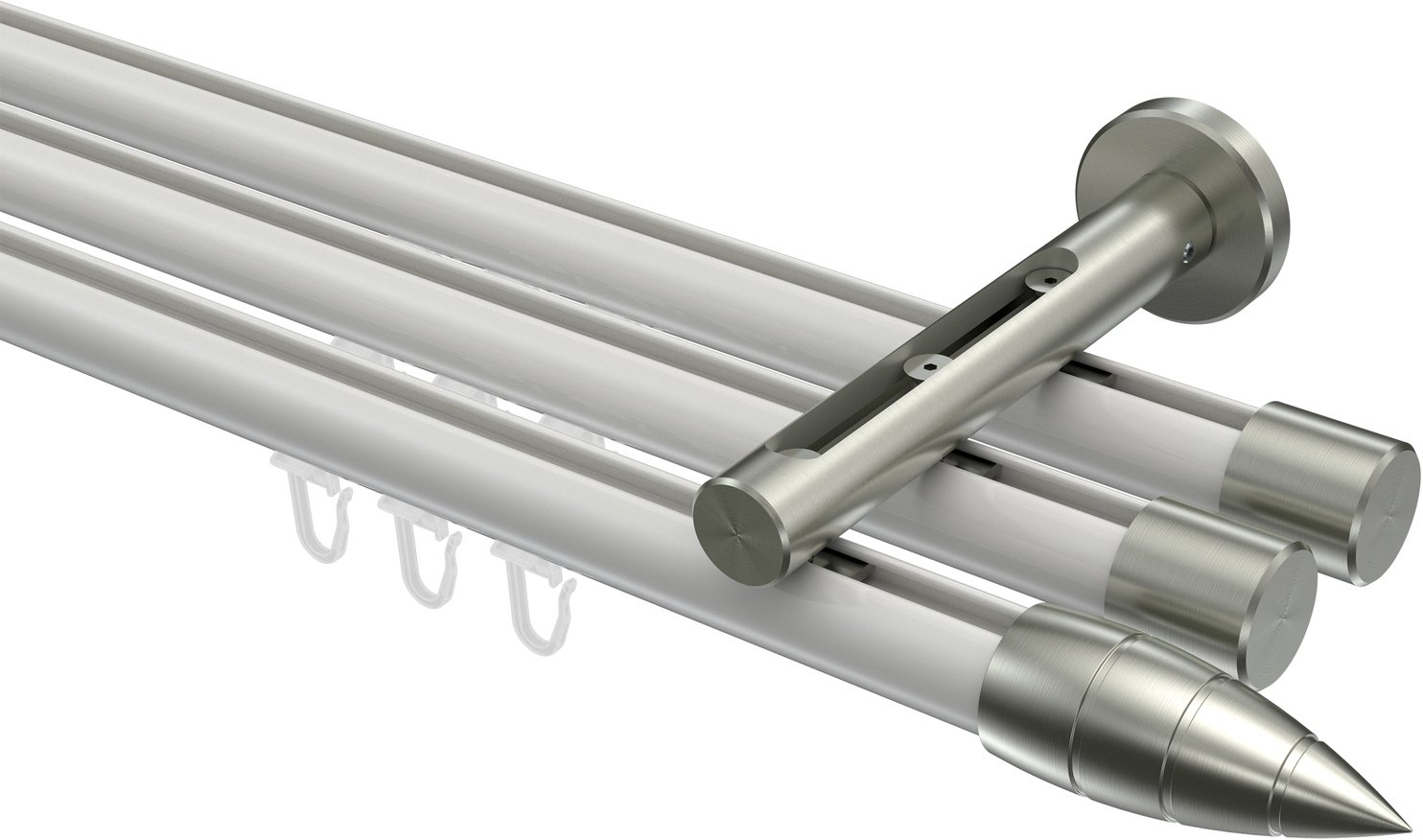Gardinenstangen mit Innenlauf aus Aluminium / Metall in 20 mm Ø, 3-läufig, Modell SITENO - Samanto Weiß / Edelstahl-Optik