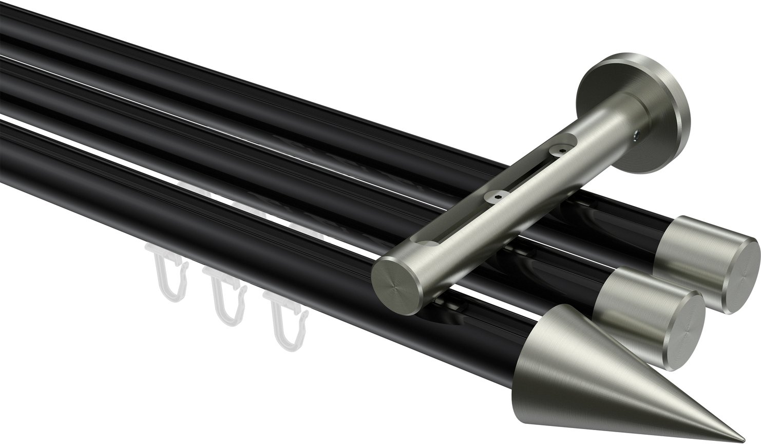 Informationen zu Innenlauf Gardinenstange Aluminium / Metall 20 mm Ø 3-läufig SITENO - Savio Schwarz / Edelstahl-Optik: