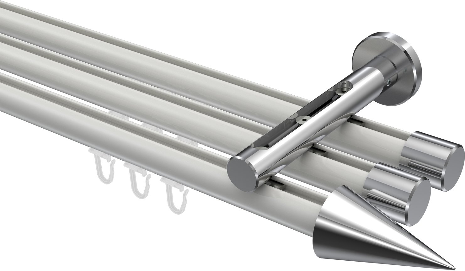 Gardinenstangen mit Innenlauf aus Aluminium / Metall in 20 mm Ø, 3-läufig, Modell SITENO - Savio Weiß / Chrom