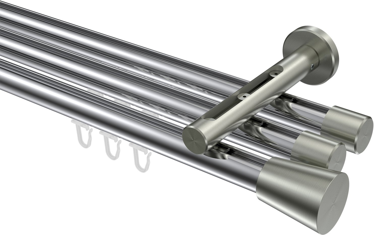 Gardinenstangen mit Innenlauf aus Aluminium / Metall in 20 mm Ø, 3-läufig, Modell SITENO - Sitra Chrom / Edelstahl-Optik