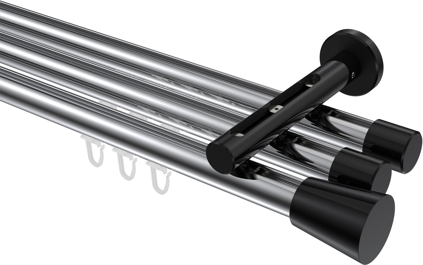 Gardinenstangen mit Innenlauf aus Aluminium / Metall in 20 mm Ø, 3-läufig, Modell SITENO - Sitra Chrom / Schwarz