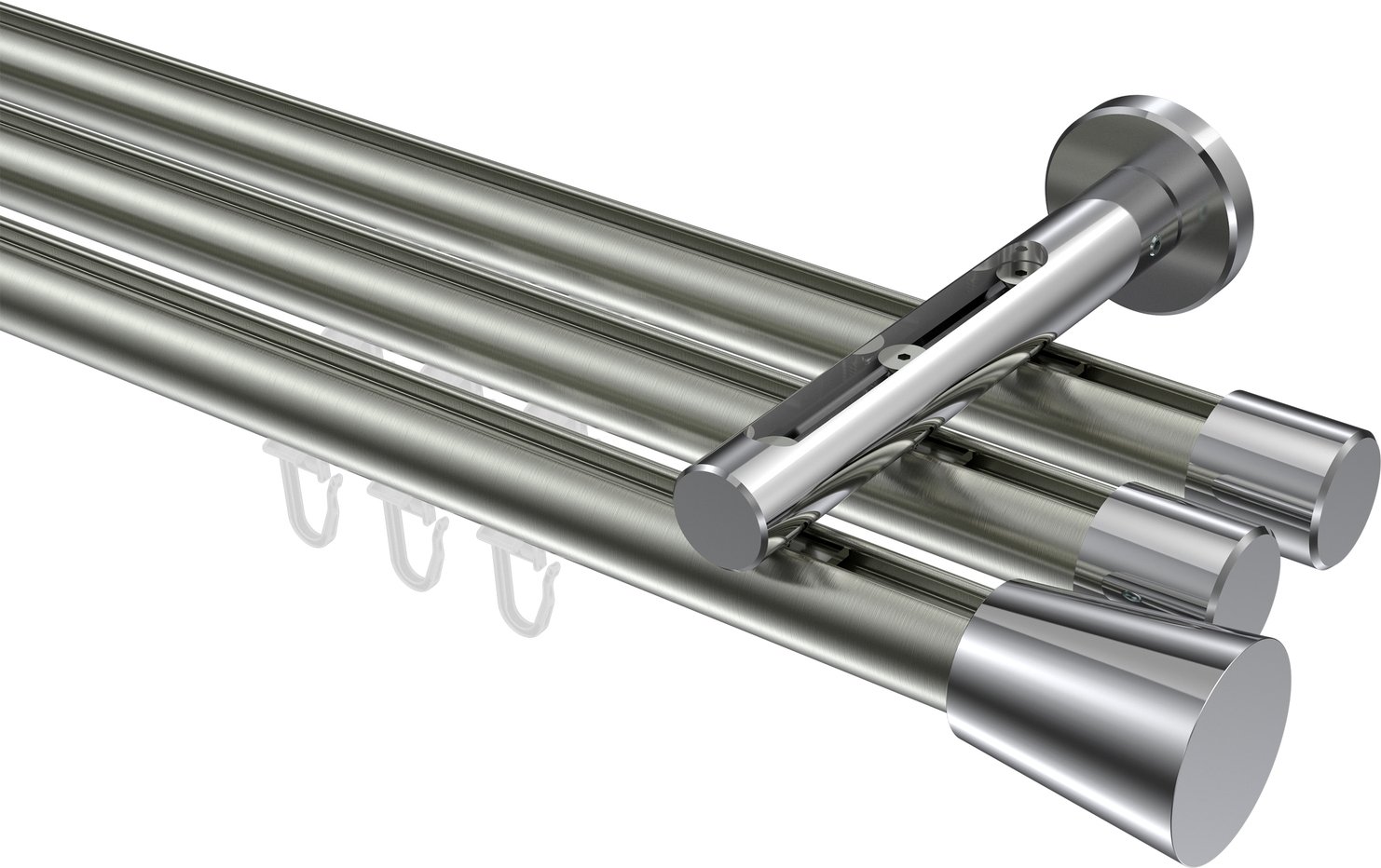Gardinenstangen mit Innenlauf aus Aluminium / Metall in 20 mm Ø, 3-läufig, Modell SITENO - Sitra Edelstahl-Optik / Chrom