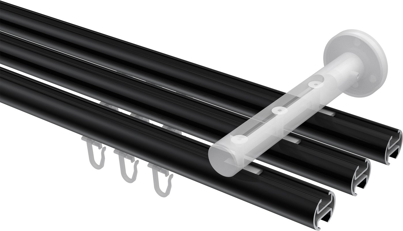 Gardinenstangen mit Innenlauf aus Aluminium / Metall in 20 mm Ø, 3-läufig, Modell SITENO - Sitra Schwarz / Chrom