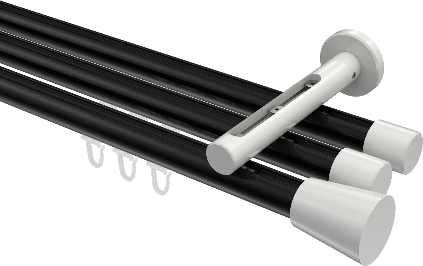 Gardinenstangen mit Innenlauf aus Aluminium / Metall in 20 mm Ø, 3-läufig, Modell SITENO - Sitra Schwarz / Weiß