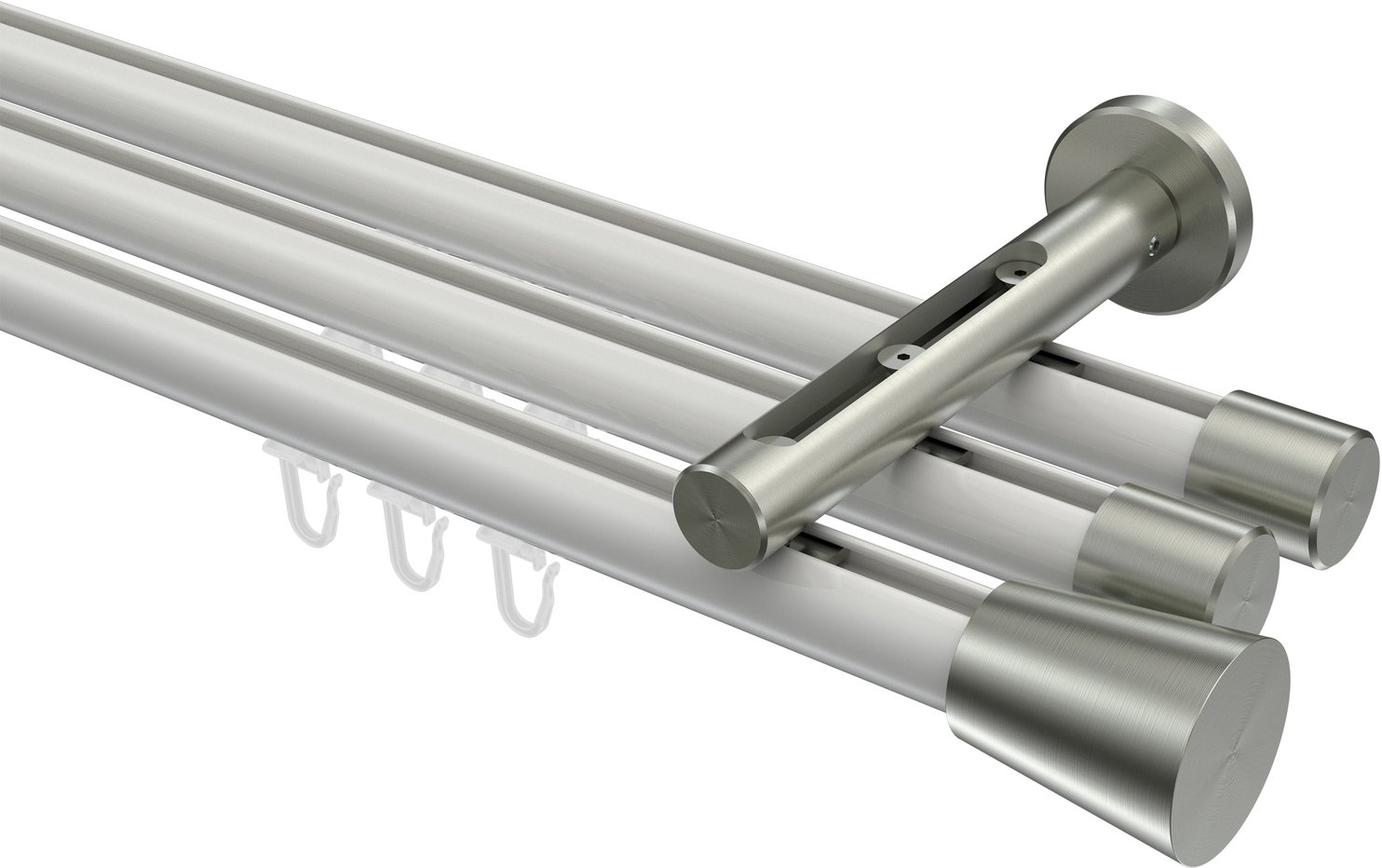 Gardinenstangen mit Innenlauf aus Aluminium / Metall in 20 mm Ø, 3-läufig, Modell SITENO - Sitra Weiß / Edelstahl-Optik
