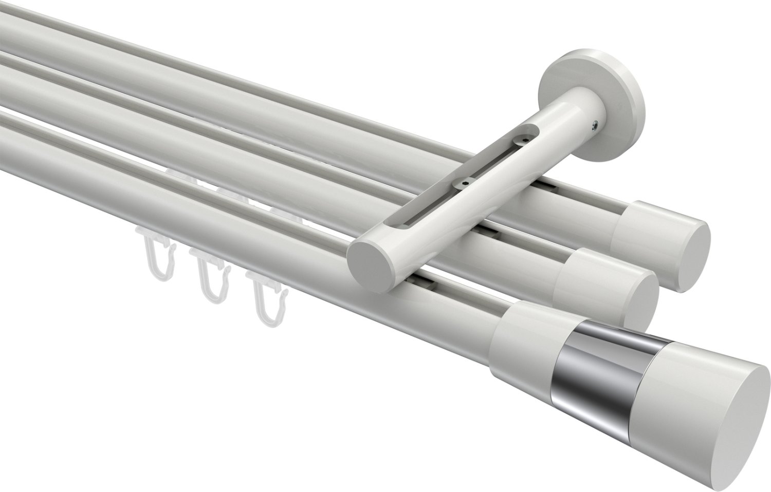 Gardinenstangen mit Innenlauf aus Aluminium / Metall in 20 mm Ø, 3-läufig, Modell SITENO - Tanara Weiß