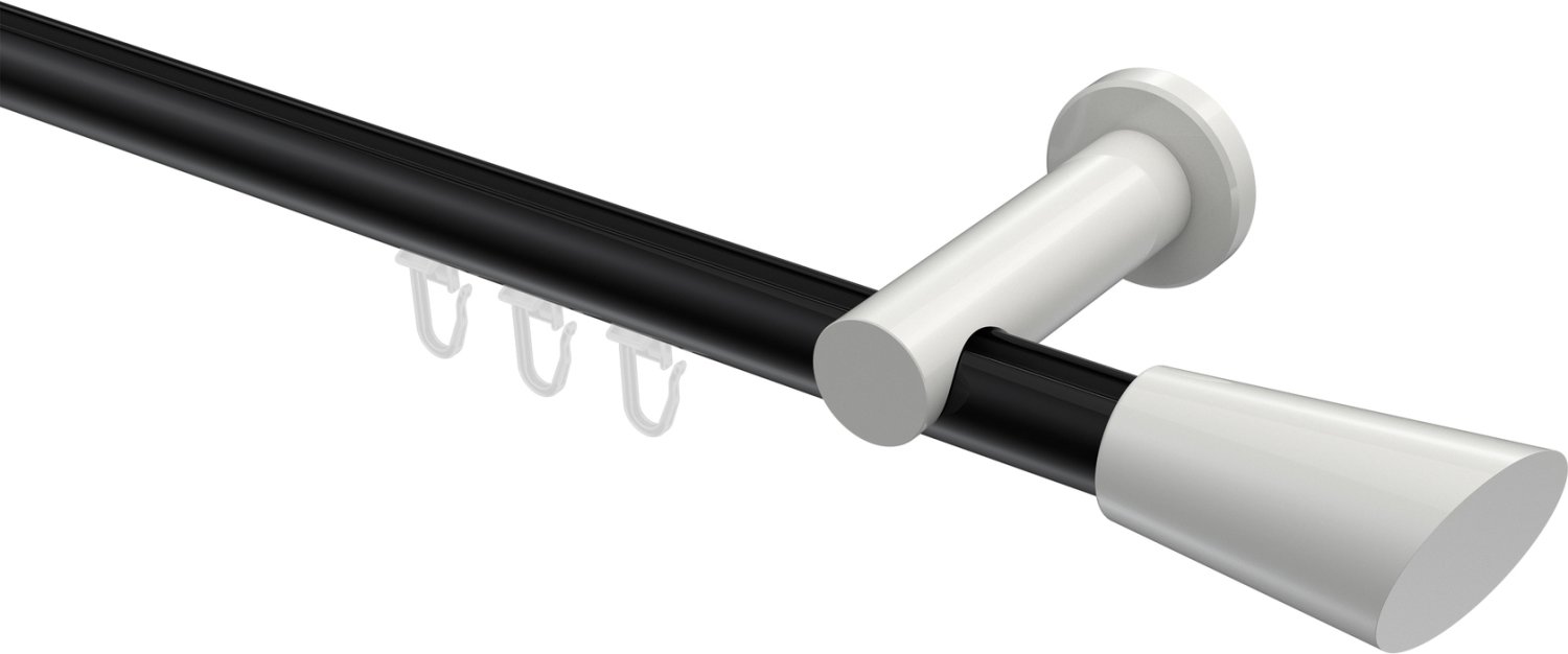 Gardinenstangen mit Innenlauf aus Aluminium / Metall in 20 mm Ø, 1-läufig, Modell PLATON - Bento Schwarz / Weiß