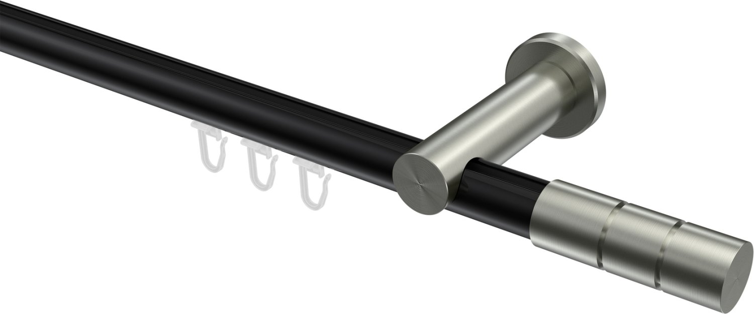 Informationen zu Innenlauf Gardinenstange Aluminium / Metall 20 mm Ø PLATON - Elanto Schwarz / Edelstahl-Optik: