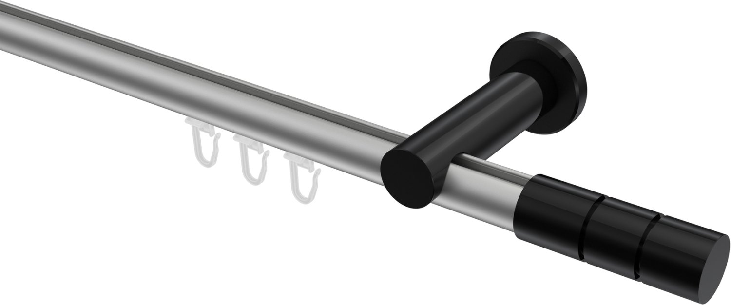 Gardinenstangen mit Innenlauf aus Aluminium / Metall in 20 mm Ø, 1-läufig, Modell PLATON - Elanto Silbergrau / Schwarz