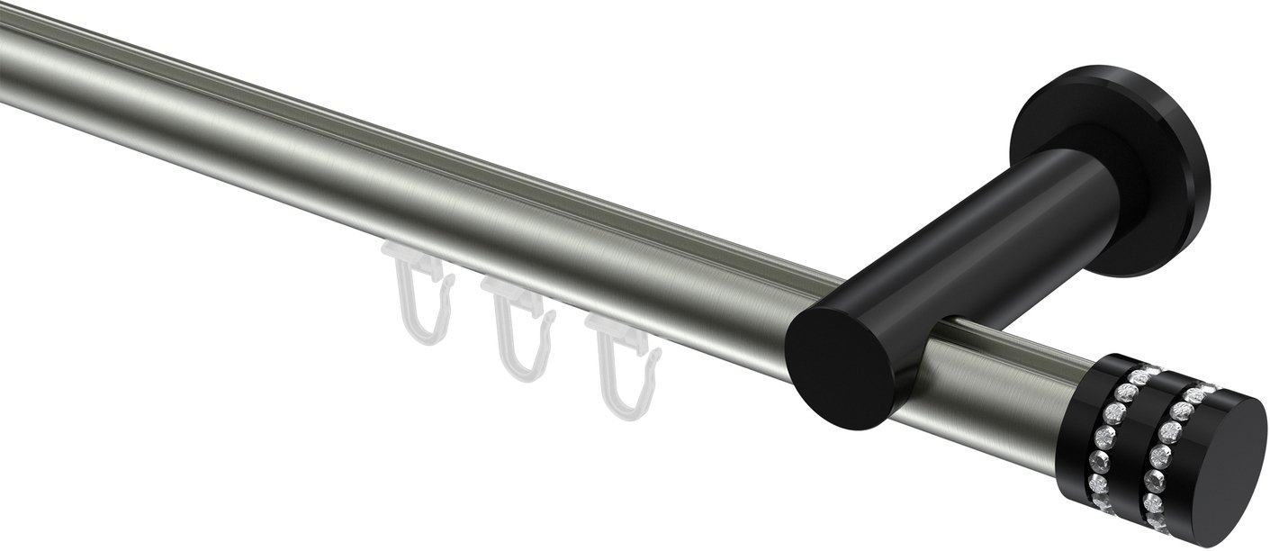 Gardinenstangen mit Innenlauf aus Aluminium / Metall in 20 mm Ø, 1-läufig, Modell PLATON - Estana Edelstahl-Optik / Schwarz