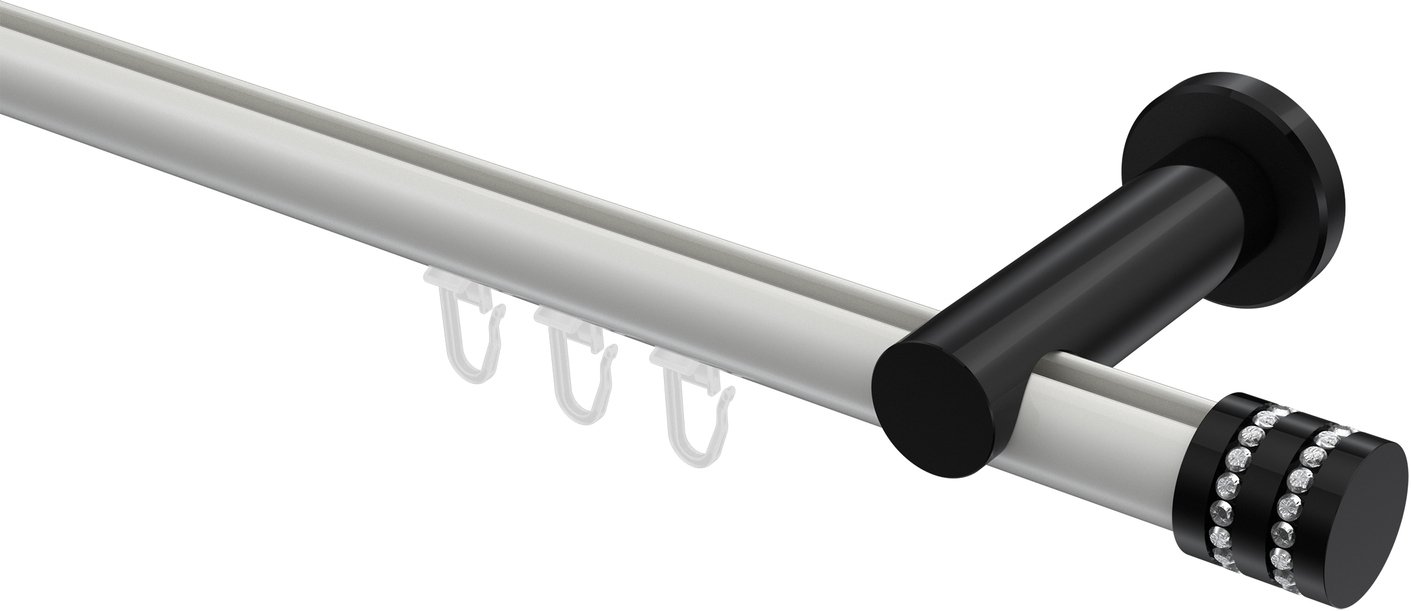 Gardinenstangen mit Innenlauf aus Aluminium / Metall in 20 mm Ø, 1-läufig, Modell PLATON - Estana Weiß / Schwarz