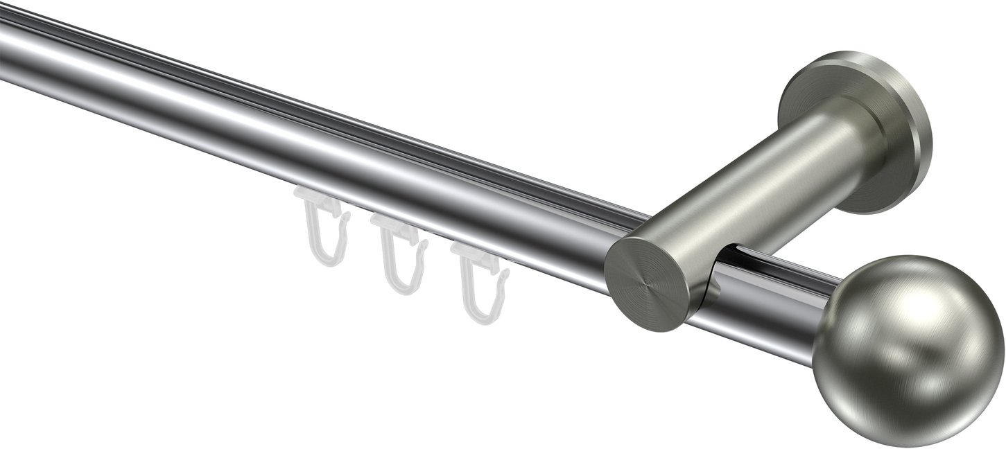 Gardinenstangen mit Innenlauf aus Aluminium / Metall in 20 mm Ø, 1-läufig, Modell PLATON - Luino Chrom / Edelstahl-Optik