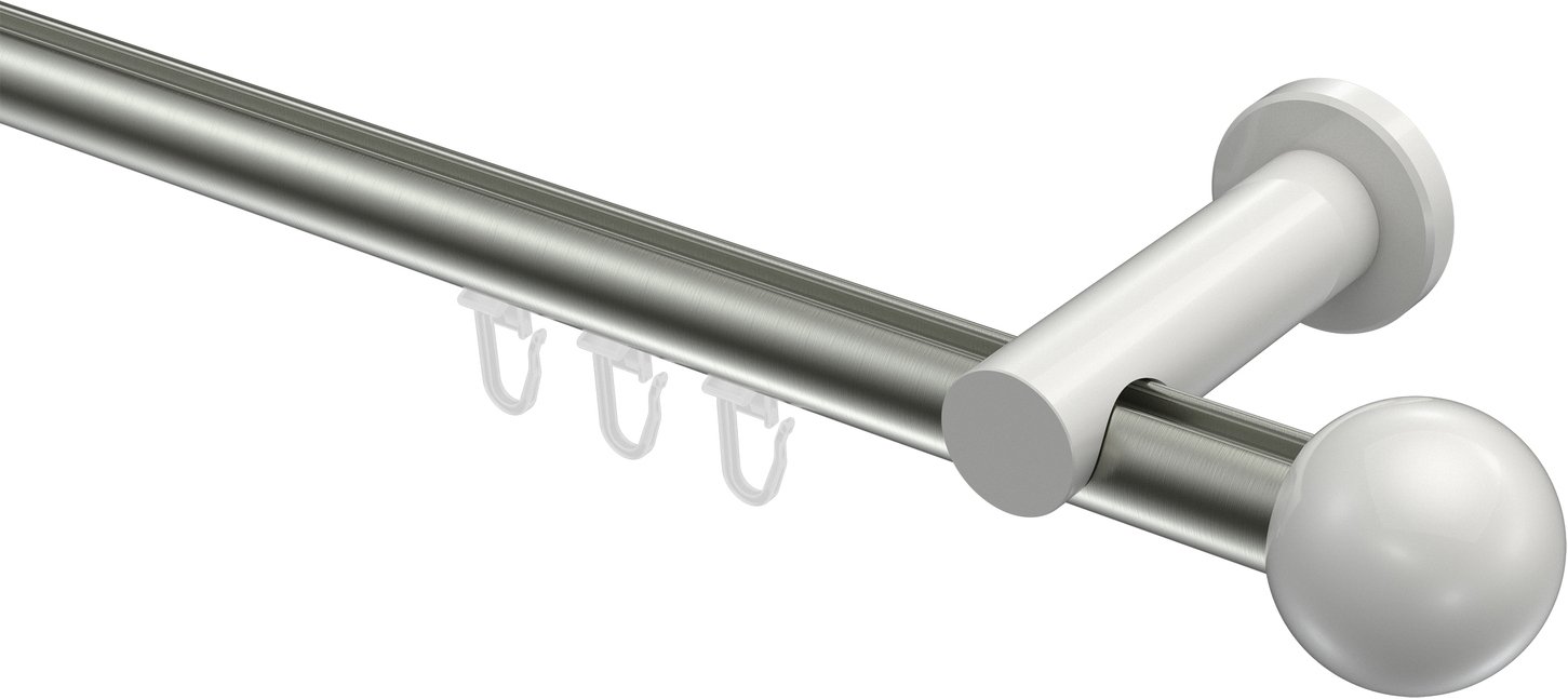 Gardinenstangen mit Innenlauf aus Aluminium / Metall in 20 mm Ø, 1-läufig, Modell PLATON - Luino Edelstahl-Optik / Weiß