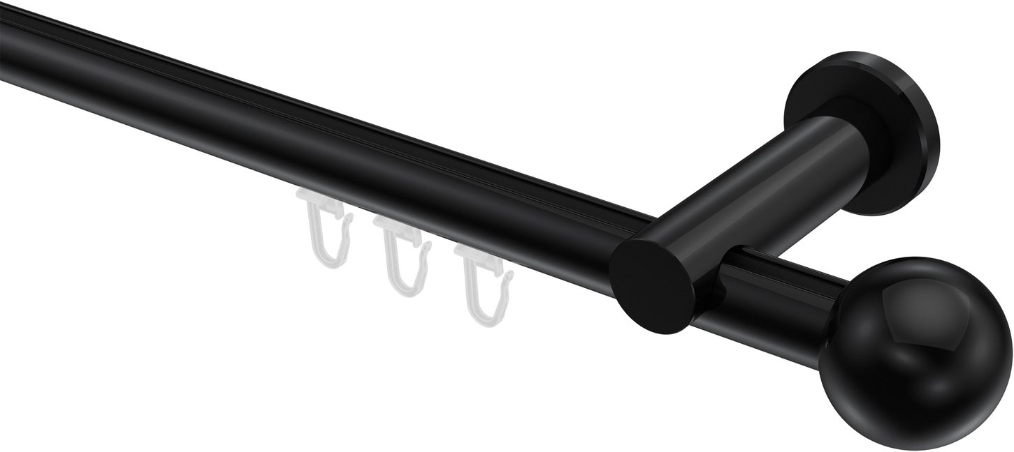 Gardinenstangen mit Innenlauf aus Aluminium / Metall in 20 mm Ø, 1-läufig, Modell PLATON - Luino Schwarz