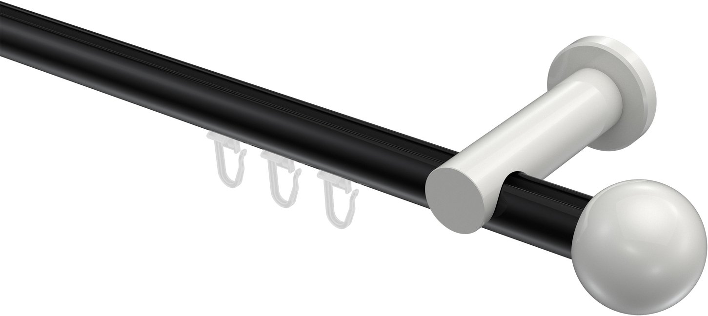 Gardinenstangen mit Innenlauf aus Aluminium / Metall in 20 mm Ø, 1-läufig, Modell PLATON - Luino Schwarz / Weiß