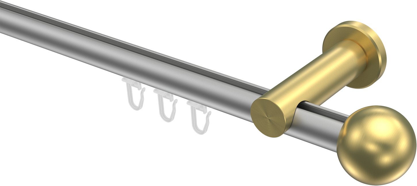 Gardinenstangen mit Innenlauf aus Aluminium / Metall in 20 mm Ø, 1-läufig, Modell PLATON - Luino Silbergrau / Messing-Optik