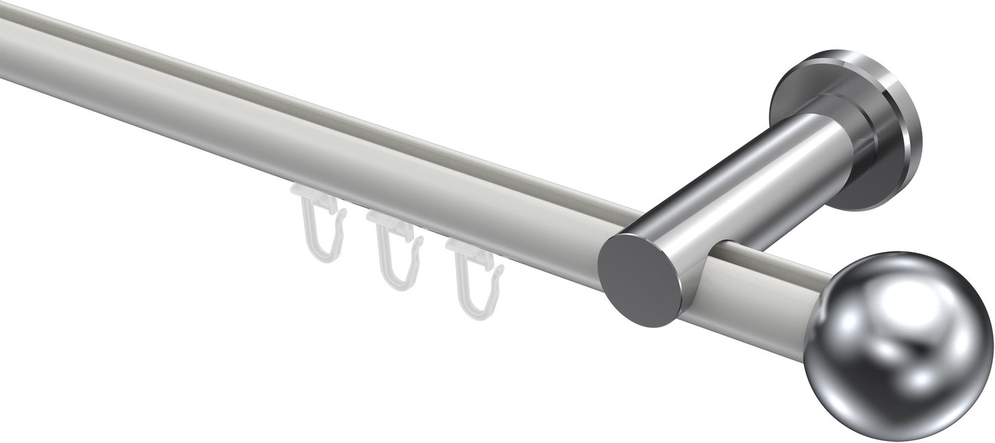 Gardinenstangen mit Innenlauf aus Aluminium / Metall in 20 mm Ø, 1-läufig, Modell PLATON - Luino Weiß / Chrom