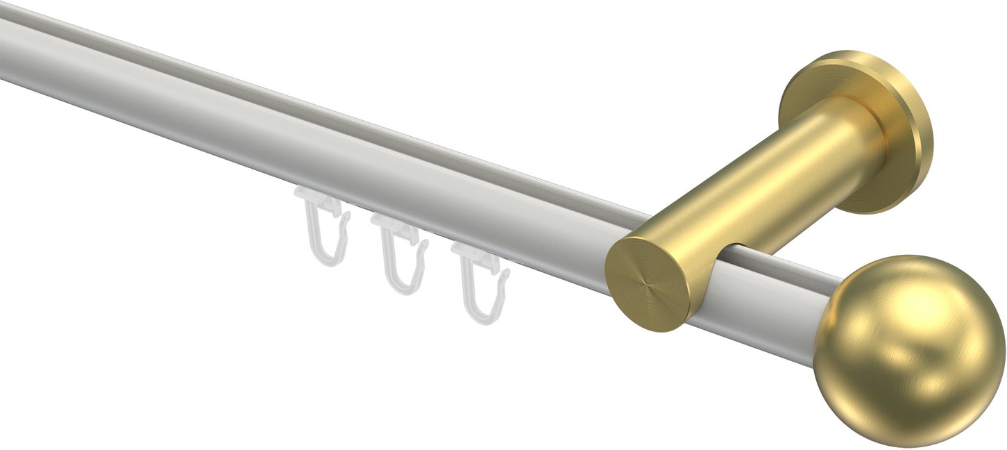 Informationen zu Innenlauf Gardinenstange Aluminium / Metall 20 mm Ø PLATON - Luino Weiß / Messing-Optik: