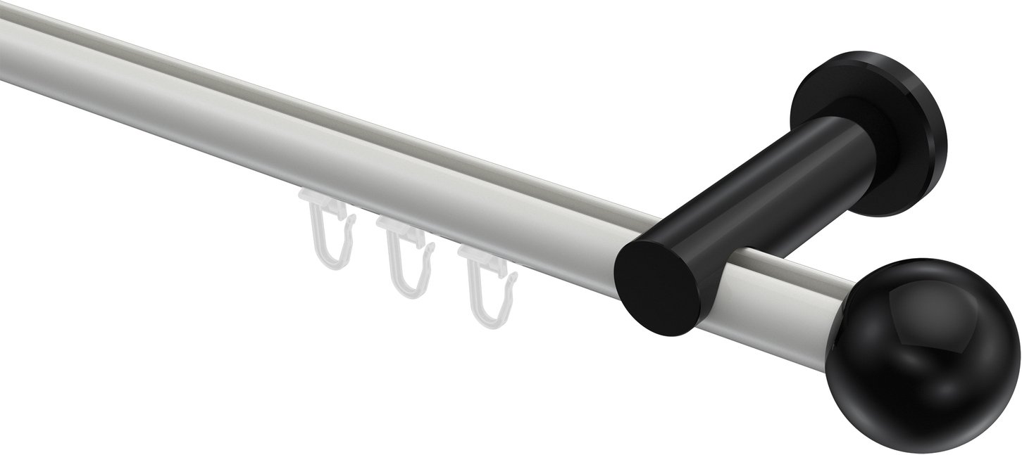 Gardinenstangen mit Innenlauf aus Aluminium / Metall in 20 mm Ø, 1-läufig, Modell PLATON - Luino Weiß / Schwarz