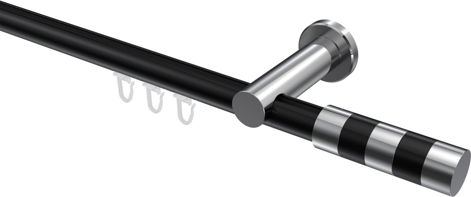 Gardinenstangen mit Innenlauf aus Aluminium / Metall in 20 mm Ø, 1-läufig, Modell PLATON - Mavell Schwarz / Chrom