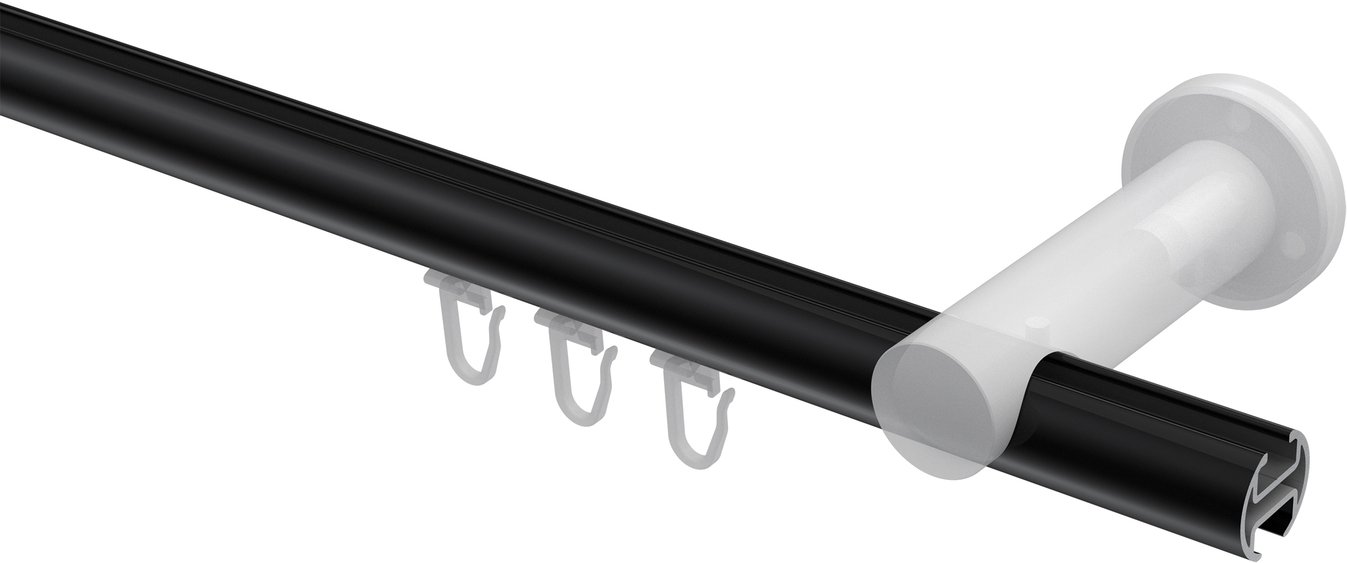 Informationen zu Innenlauf Gardinenstange Aluminium / Metall 20 mm Ø PLATON - Savio Schwarz / Edelstahl-Optik:
