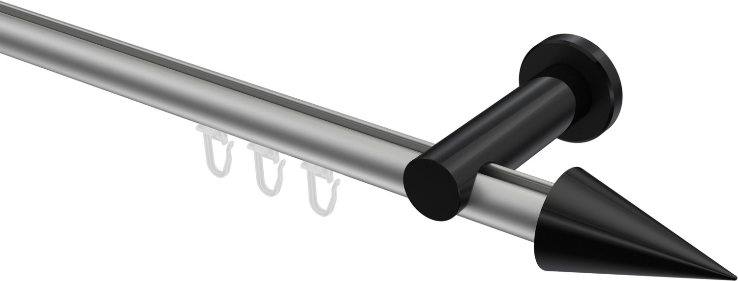 Gardinenstangen mit Innenlauf aus Aluminium / Metall in 20 mm Ø, 1-läufig, Modell PLATON - Savio Silbergrau / Schwarz