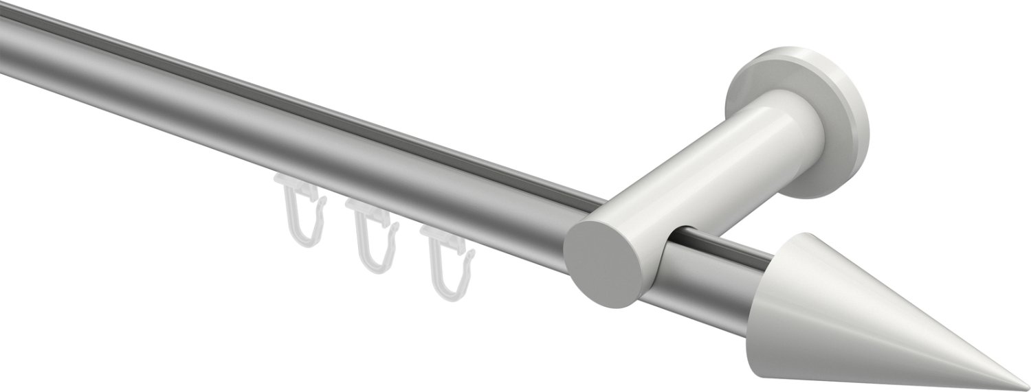 Gardinenstangen mit Innenlauf aus Aluminium / Metall in 20 mm Ø, 1-läufig, Modell PLATON - Savio Silbergrau / Weiß