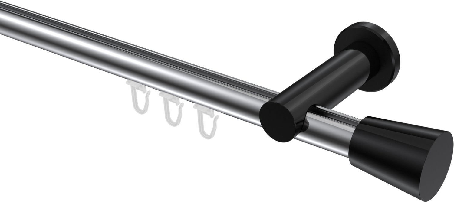 Gardinenstangen mit Innenlauf aus Aluminium / Metall in 20 mm Ø, 1-läufig, Modell PLATON - Sitra Chrom / Schwarz