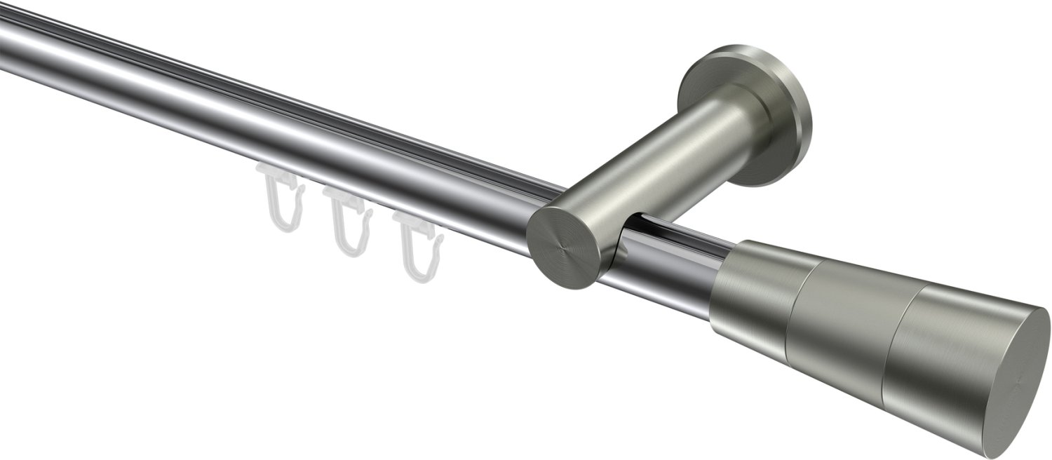 Gardinenstangen mit Innenlauf aus Aluminium / Metall in 20 mm Ø, 1-läufig, Modell PLATON - Tanara Chrom / Edelstahl-Optik
