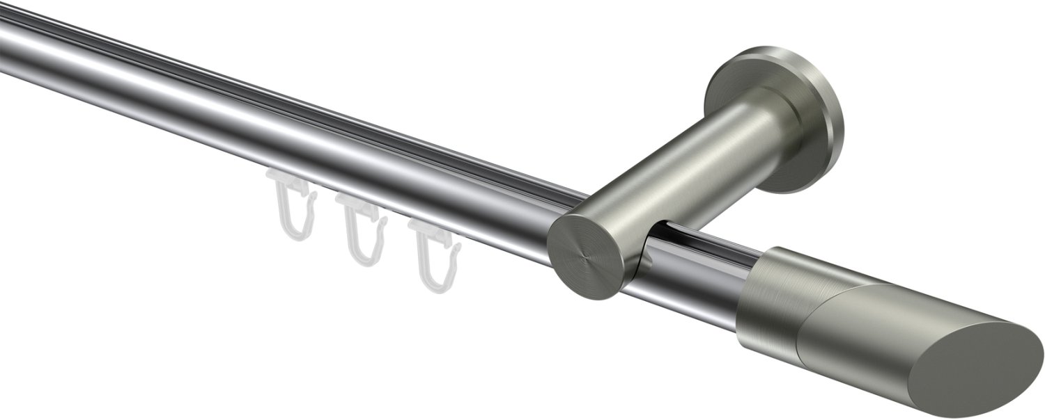 Gardinenstangen mit Innenlauf aus Aluminium / Metall in 20 mm Ø, 1-läufig, Modell PLATON - Verano Chrom / Edelstahl-Optik