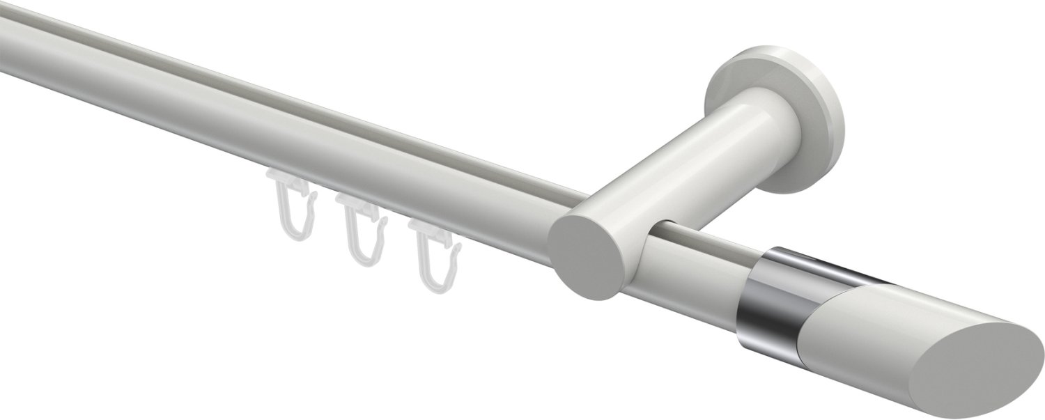 Gardinenstangen mit Innenlauf aus Aluminium / Metall in 20 mm Ø, 1-läufig, Modell PLATON - Verano Weiß