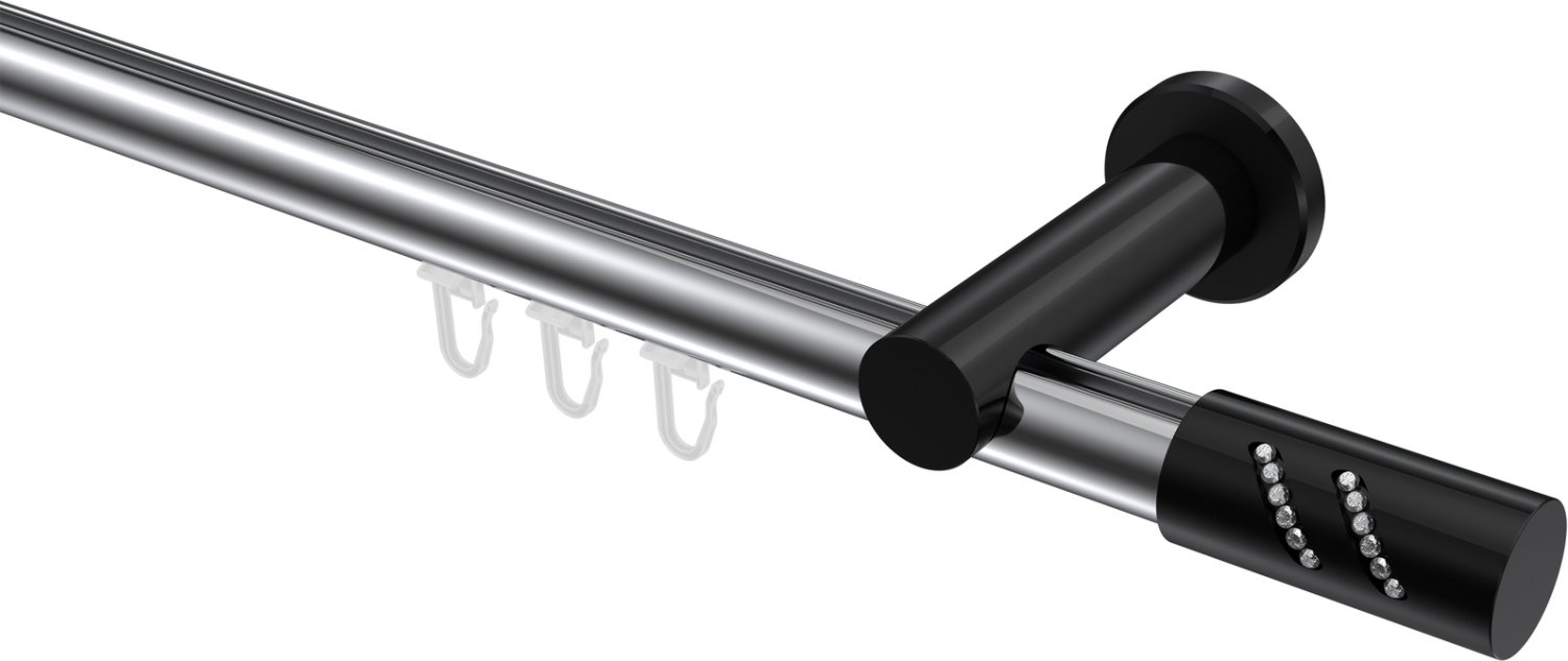 Gardinenstangen mit Innenlauf aus Aluminium / Metall in 20 mm Ø, 1-läufig, Modell PLATON - Zoena Chrom / Schwarz
