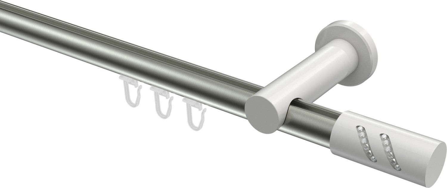 Gardinenstangen mit Innenlauf aus Aluminium / Metall in 20 mm Ø, 1-läufig, Modell PLATON - Zoena Edelstahl-Optik / Weiß