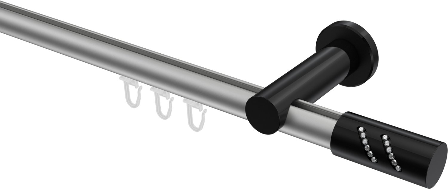 Gardinenstangen mit Innenlauf aus Aluminium / Metall in 20 mm Ø, 1-läufig, Modell PLATON - Zoena Silbergrau / Schwarz