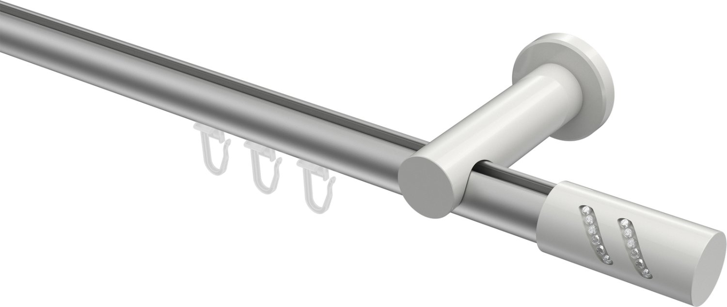 Gardinenstangen mit Innenlauf aus Aluminium / Metall in 20 mm Ø, 1-läufig, Modell PLATON - Zoena Silbergrau / Weiß