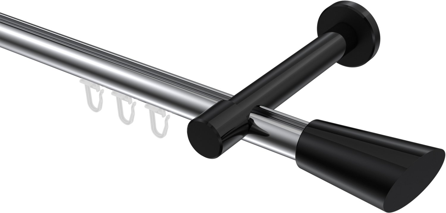 Gardinenstangen mit Innenlauf aus Aluminium / Metall in 20 mm Ø, 1-läufig, Modell PRESTIGE - Bento Chrom / Schwarz