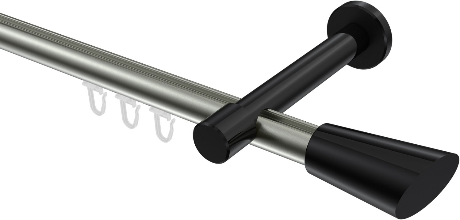 Informationen zu Innenlauf Gardinenstange Aluminium / Metall 20 mm Ø PRESTIGE - Bento Edelstahl-Optik / Schwarz: