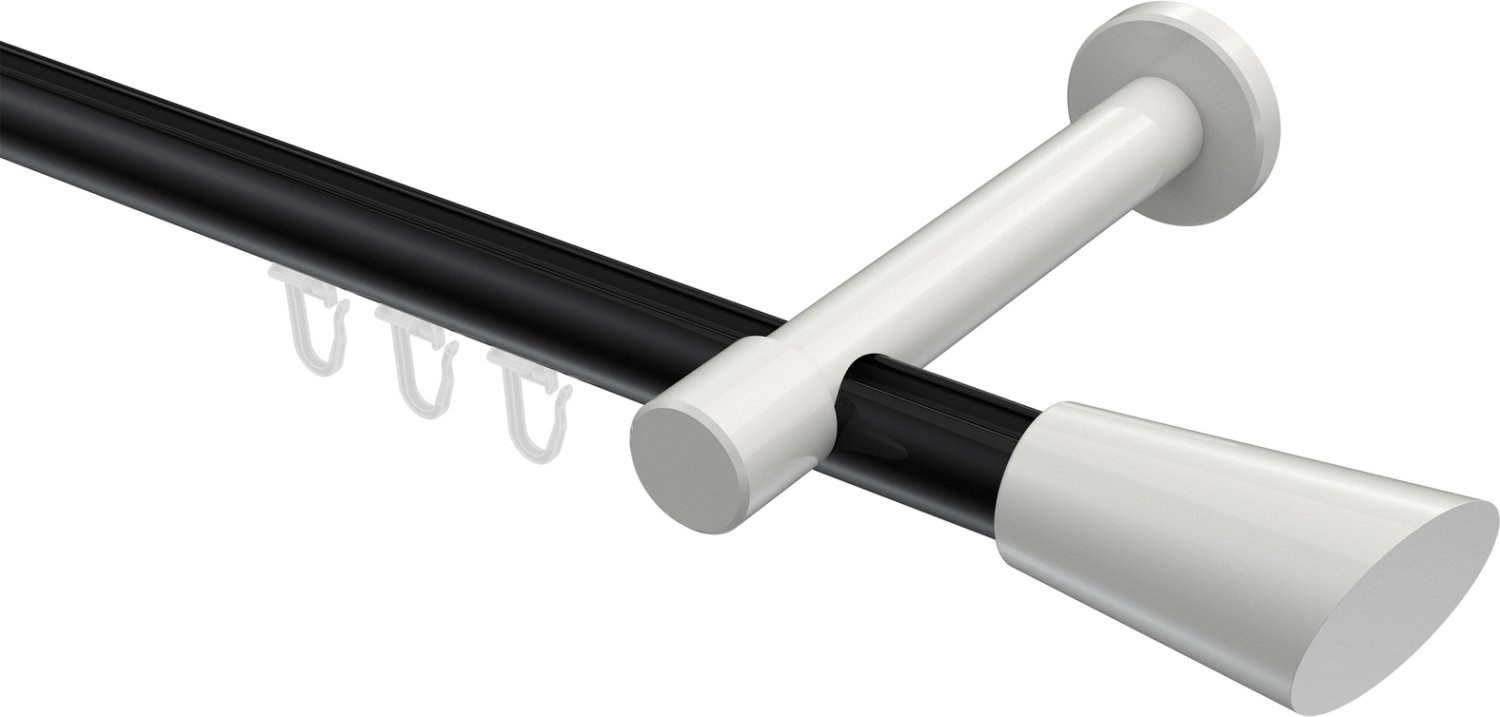 Gardinenstangen mit Innenlauf aus Aluminium / Metall in 20 mm Ø, 1-läufig, Modell PRESTIGE - Bento Schwarz / Weiß