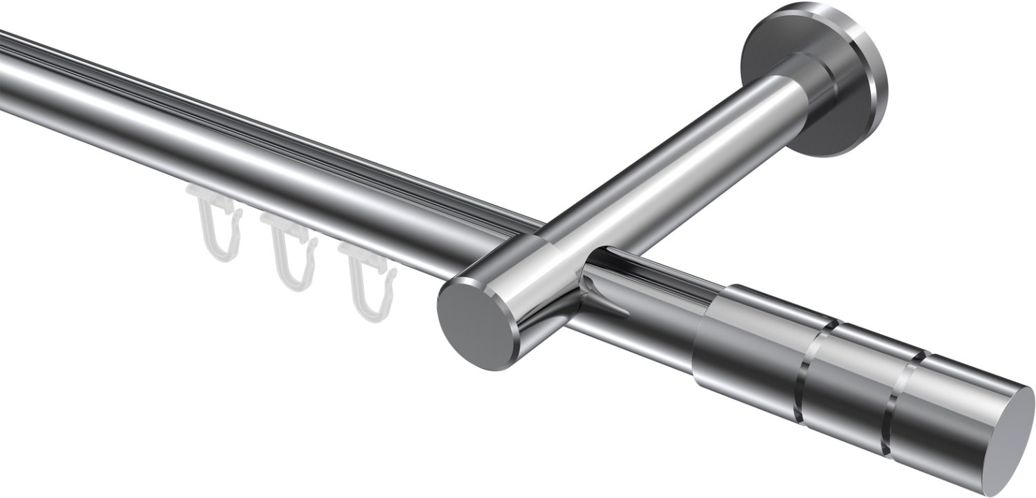 Gardinenstangen mit Innenlauf aus Aluminium / Metall in 20 mm Ø, 1-läufig, Modell PRESTIGE - Elanto Chrom