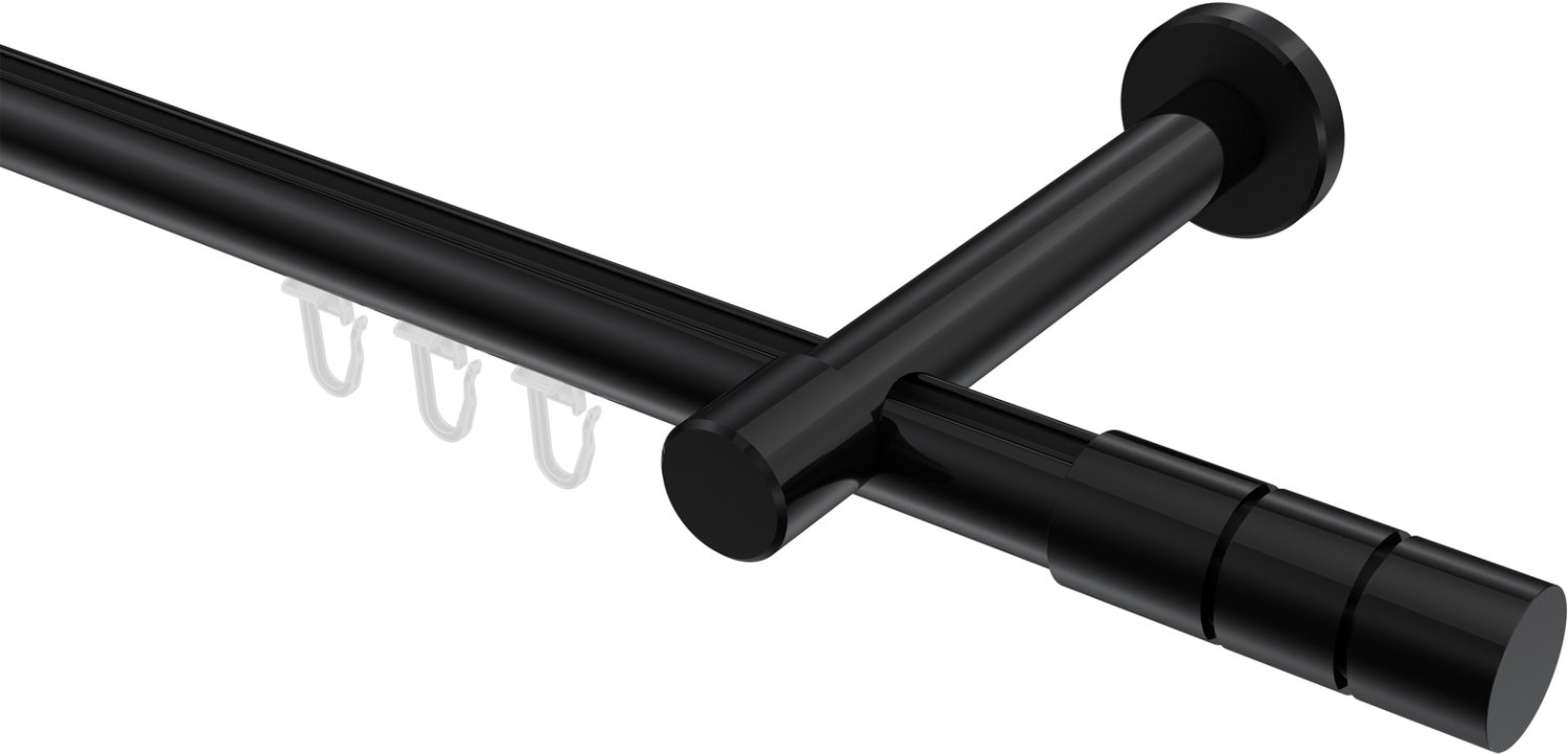 Gardinenstangen mit Innenlauf aus Aluminium / Metall in 20 mm Ø, 1-läufig, Modell PRESTIGE - Elanto Schwarz