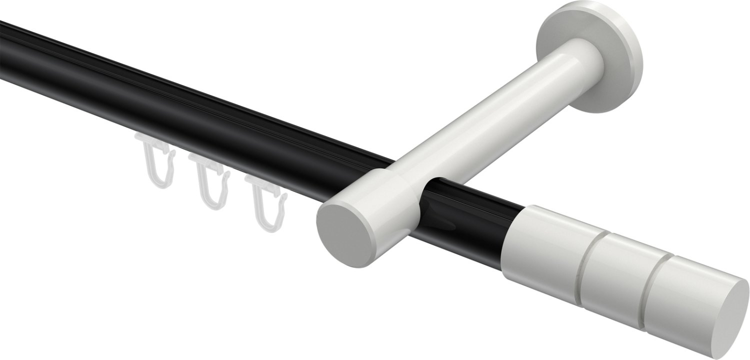 Informationen zu Innenlauf Gardinenstange Aluminium / Metall 20 mm Ø PRESTIGE - Elanto Schwarz / Weiß: