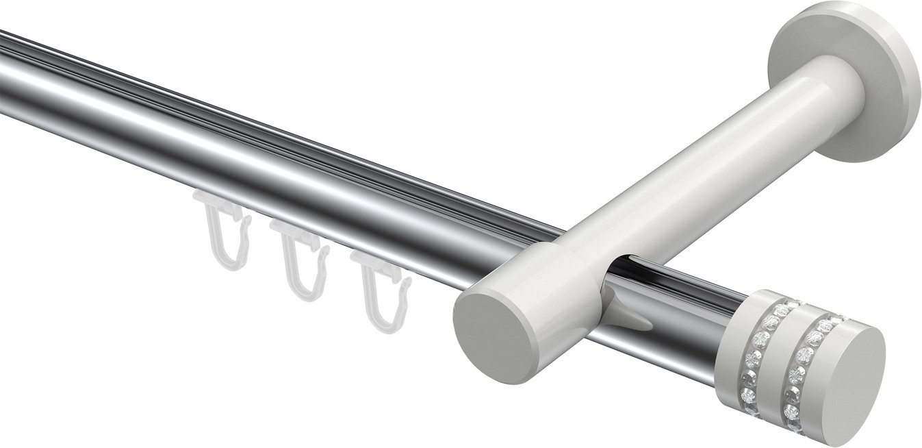 Gardinenstangen mit Innenlauf aus Aluminium / Metall in 20 mm Ø, 1-läufig, Modell PRESTIGE - Estana Chrom / Weiß